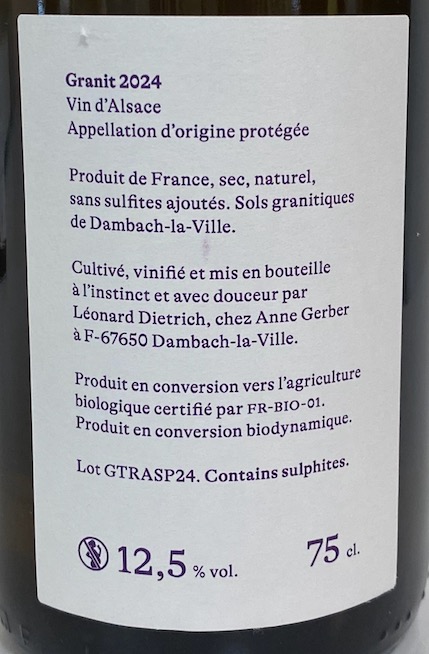 ●Granit/2024(グラニット2024年:リースリング60%、シルヴァネール30%、ゲヴェルツトラミネール10%)白 2025年11月リリース