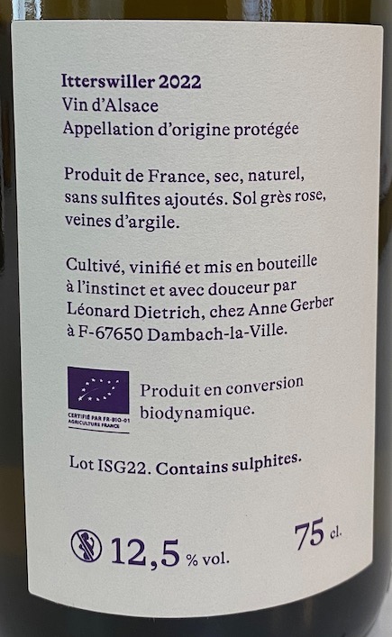 ●Itterswiller/2022(イッターズヴィラー2022年:シルヴァネール50%、ゲヴェルツトラミネール50%)白 2025年11月リリース