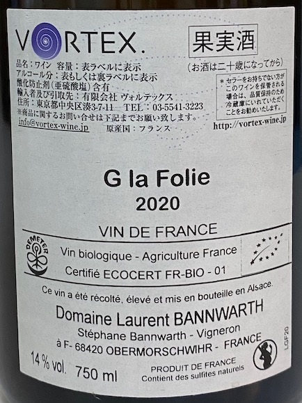 ●G la Folie/2020(ジェ・ラ・フォリー2020年:ゲヴェルツトラミネール)白微炭酸 2025年12月リリース