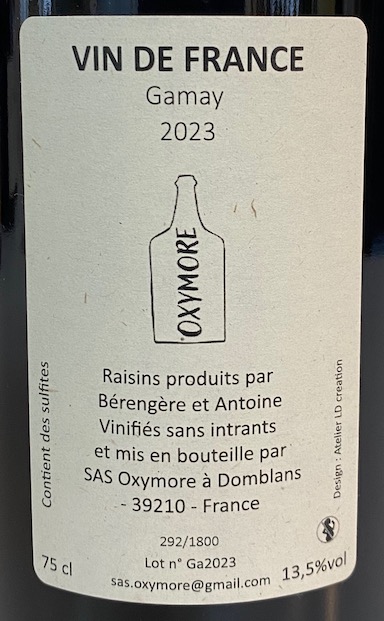 ボージョレ地方のDomaine Oedipodaの葡萄を使用。全房で10日間マセラシオン。ステンレスタンクで発酵を終了させて、その後は228Lの樽で8ヶ月間の熟成。亜硫酸無添加。