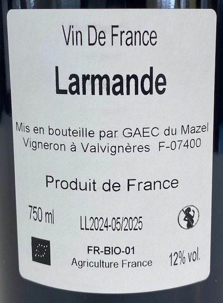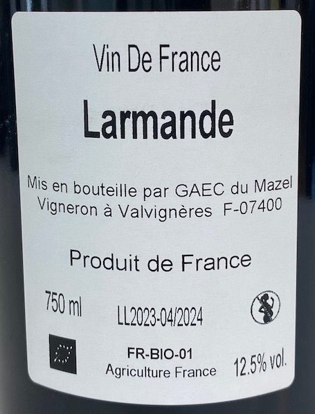 ●Larmande/2023(ラルマンド2023年:シラー)赤 2026年2月リリース