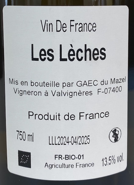 ●Les Leches/2024(レ・レッシュ2024年:グルナッシュ・ブラン50%、ソーヴィニョン・ブラン50%)白 2026年2月リリース