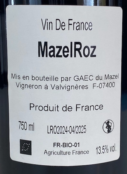 ●Mazel Roz/2024(マゼル・ローズ2024年:メルロー80%、グルナッシュ10%、シラー10%)ロゼ 2026年2月リリース