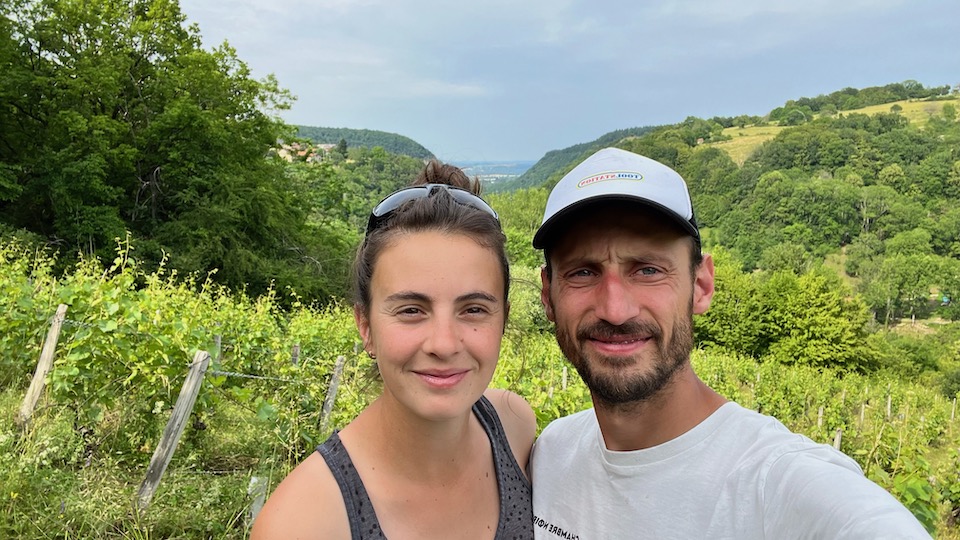 ドメーヌ名は直訳で剪定士と収穫士という意味で、彼ら二人のぶどう栽培に対する哲学を表しています。福岡正信の自然農法「不耕起、無肥料、無除草」を基礎として人工的な介入を避け、自分達は畑にある全てに自由を与える存在であり、その自然エネルギーがワインに伝わることを願うことからこの名前を選びました。アルザス出身のジョルダンはドメーヌ設立までに約10年間の修行を積みました。クリスチャン・ビネールを含め他複数のドメーヌに数年間ずつ勤め、その後2018年にブルーノ・シュレール勤務時代に南仏出身のクロエと出会い、二人の生産者としての道が始まりました。イタリアのデニス・モンタナールやジョージアなどにも足を運び、約2年間様々な場所でワイン造りを学びながらビュジェーに辿り着きました。彼らの畑は大きく3つのセクターに分かれます。標高300〜500m、斜面の向き、土壌構成、樹齢20年〜最長110年など、それぞれの区画に他とは違う特徴が揃います。この大きな多様性を持つテロワールに加えて、彼らが心がける完全に自然なサンスフルの醸造がぶどうの表現力を高めワインに素晴らしい複雑性を与えます。